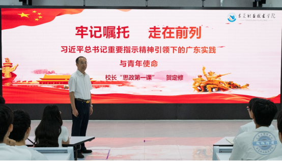 校党委副书记、校长贺定修以“牢记嘱托走在前列—习近平总书记重要指示精神引领下的广东实践与青年使命”为题,为智能制造学院学子们讲授了一堂立意高远、内涵丰富的“思政第一课”。