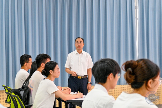 课上,贺定修校长系统回顾了习近平总书记对广东“走在前列”的总要求和“排头兵、先行地、实验区”的战略定位,结合广东亮眼成绩,详细解读了“1310”部署绘就的宏伟蓝图。随后,他将视角聚焦东莞,展示城市以“人工智能+”抢占新赛道、以大国重器推动科创、以“头号力度”推进“百千万工程”的生动实践。