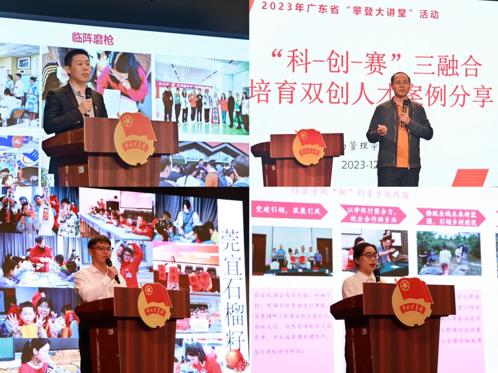 大会第二环节为广东省“攀登大讲堂”活动,紧扣省委“1310”具体部署和东莞市“百千万工程”行动计划,将创新创业与社会实践工作有机结合,邀请“挑战杯”系列竞赛和广东青年大学生助力“百千万工程”突击队行动重点团队学生代表作朋辈科创经验分享、我校青年科创导师作主旨发言,最后校团委负责同志解读“攀登计划”政策和2024年“挑战杯”赛事安排。本次活动全方位、立体式展示社会实践、志愿服务、科技创新、就业创业等共青团实践育人领域的东职方案。